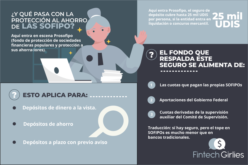Traducción: sí hay seguro, pero el tope en SOFIPOs es mucho menor que en bancos tradicionales.